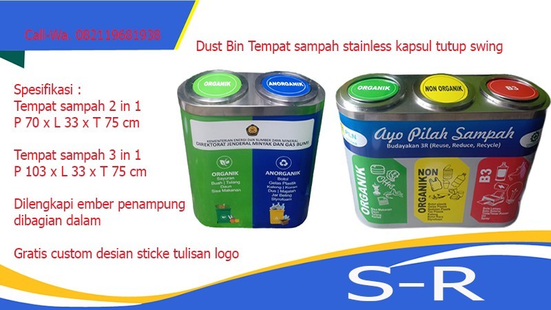 JUAL TEMPAT SAMPAH STAINLESS 4 IN 1 TONG SAMPAH STAINLESS DUST BIN KAPSUL STAINLESS, DESAIN STICKER TULISAN BISA CUSTOM Spesifikasi: Matrial bahan stainless steel Panjang 135 cm Lebar 33 cm Tinggi 75 cm Model tutup swing/goyang, dilengkapi 4 buah ember penampung sampah dibagian dalam Kami melayani pemesana dalam jumlah besar maupun jumlah kecil, Untuk mendapatkan… selengkapnya